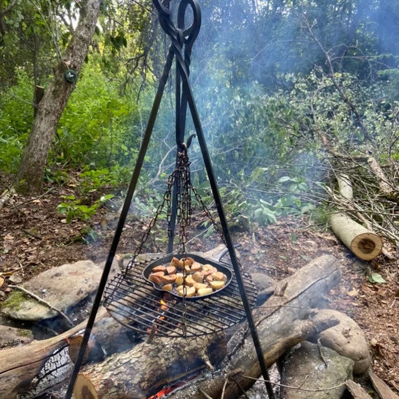 XL heavy duty forged camp cooking tripod holds OVER 95 POUNDS! seen on tv’s , fallout, dinner: impossible